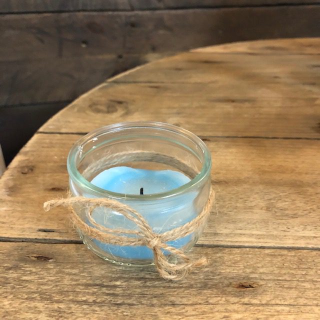Photophores en verre agrémentés de dentelle, toile de jute ou corde de jute pour éclairer vos tables et buffets dans un style champêtre. A utiliser de manière dépareillée ou pas. Loués sans bougies chauffe-plat.